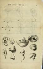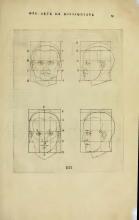 The page features diagrams and illustrations focused on teaching the drawing of facial features. It includes geometric layouts and labeled parts, enhancing the educational value of the illustrations for artists. |