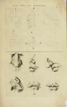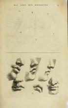The text is titled "The Art of Drawing" and includes labeled diagrams and illustrations. The drawings provide guidance on creating facial features, including the nose and mouth. The content is likely instructional, aimed at teaching artistic techniques for rendering human expressions. |