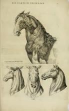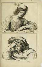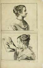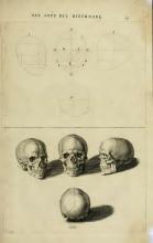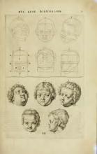 The image features text about drawing techniques, focusing on the art of sketching heads and skulls. It includes proportion guidelines and an exploration of head anatomy through labeled diagrams and realistic illustrations. The page is part of a historic book on painting and drawing, published in the 17th century. |