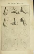 The text demonstrates the method for drawing feet using geometric figures, ensuring proportion and accuracy. Foot shapes are broken down into simple forms like circles and triangles to better understand and represent them in art. The instructions emphasize that understanding these fundamental shapes allows one to accurately depict any type of foot desired. |