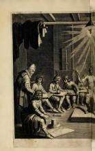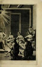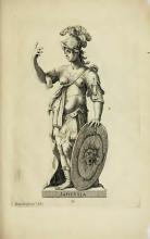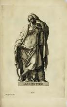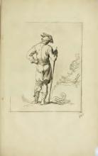The text in the image credits R. Sauey for drawing and Ro. de Voust for sculpting or engraving the images. There is no other detailed textual content provided in this image. |