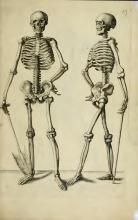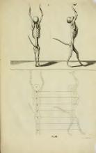 The image contains anatomical illustrations showing skeletal figures in various poses with minimal text present. The page appears to be from an instructional guide related to drawing or understanding human anatomy, aiding in artistic representation. |