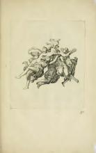 The text indicates that the image is labeled "Plate V" from a historic art book. The book provides instructional illustrations for drawing human anatomy. The image shows cherubic figures in various poses, aiding in the study of human form and movement in art. |