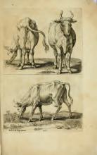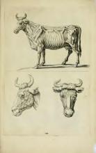 This image includes geometric representations and proportions of cows. It is part of a historical art instruction book focused on teaching artists how to depict animals accurately. Roman numeral XXVII indicates the page number. |