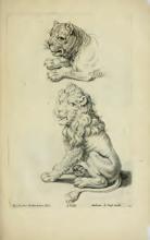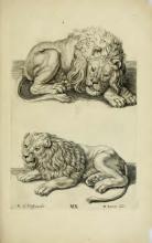 The page includes engravings of lions, created by R. de Vorst and R. Savery. The Roman numeral XIX is present. It emphasizes the artists' attention to detail and anatomy. |