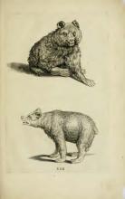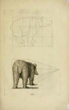 The page displays two drawings of a bear, one from the side with a grid and one from the rear with perspective lines. These are likely educational illustrations for drawing animals. |