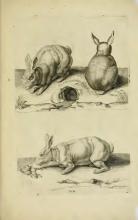The page predominantly features illustrations of rabbits in various poses, possibly intended for anatomical study. The rabbits are depicted in motion and at rest, showcasing musculature and form. The images serve as instructional aids for understanding animal anatomy. |