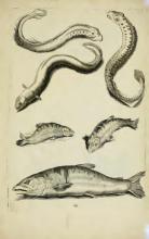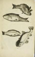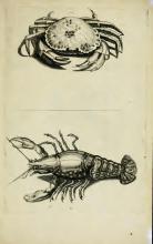 The page includes illustrations of a crab and a lobster, labeled with the letter 'V'. These detailed engravings were used for artistic and educational purposes, reflecting the style of the 1670s. |