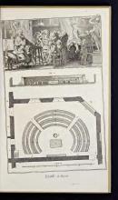 The image illustrates an art school with both active artists and a detailed floor plan. C. N. Cochin created the drawing, and D. L. Fronde engraved it, representing the style and educational spaces of the 18th century. |