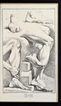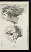 The text is a detailed guide to drawing and understanding human anatomy. Various plates illustrate different parts of the body in different views, including faces, mouths, noses, hands, and feet, providing instruction on proportion and foreshortening. The work includes references to notable artists like Raphael and was aimed at teaching drawing techniques and concepts. |