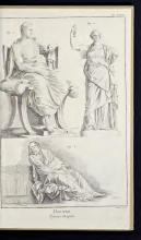 The text labels the drawings as 'Drawing: Draped Figures.' The image illustrates techniques in depicting figures with drapery in classical poses, consistent with artworks designed for teaching artistic techniques in 1777. |
