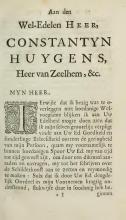 The text is a dedication to Constantijn Huygens, where the author expresses his gratitude for Huygens' support in his endeavors related to the art of painting. The author acknowledges the guidance and encouragement received, which has emboldened him to pursue writing on the subject. The note reflects a respectful acknowledgment of Huygens' influence and support in the author's artistic works. |