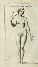 This title page introduces a book that covers the knowledge of form, proportion, and movement of human figures, emphasizing both artistic and practical applications. It instructs readers on drawing, painting, sculpture, and other arts, also focusing on the graceful conduct of individuals through various actions and gestures. The book, authored by Wilhelm Goeree, was published in Amsterdam in 1682. |