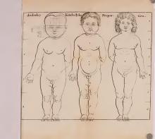 The text provides a detailed overview of various physical and behavioral descriptions focusing on human anatomy and characteristics. It includes diverse topics such as the structure and proportion of heads, muscles, humors, and comparative descriptions of different people and children. The content reflects historical perceptions of anatomy, emphasizing measurement and classification. |