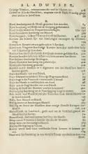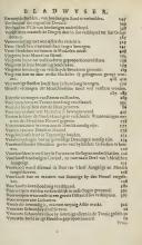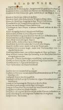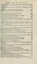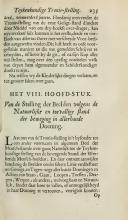 The text is a table of contents from a historical book, listing various topics related to human figures and artistic design. It covers aspects such as facial expressions, nerve functions, and the interactions between body and soul. The topics suggest a detailed exploration of the anatomy and aesthetic considerations relevant to artists. |