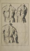 The image contains anatomical illustrations with labels 'A' and 'B'. They show detailed depictions of the human back, likely intended as artistic references. These are part of Gerard de Lairesse's 1719 book on drawing principles. |