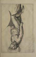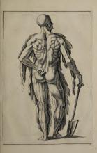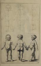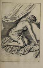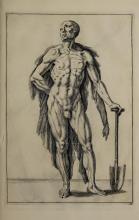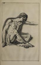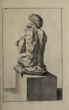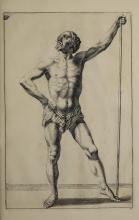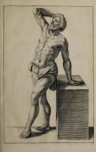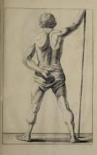 The page contains an illustration typical of Gerard de Lairesse’s instructional style, demonstrating the human form's musculature and posture. The image complements the book's theme of teaching drawing techniques. It reflects the classical artistic emphasis on anatomy and the representation of action. |