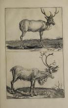 The page contains detailed drawings of deer. The illustrations focus on different poses, providing visual studies for artists. These are likely tools for learning from "The Principles of Drawing" by Gerard de Lairesse. |