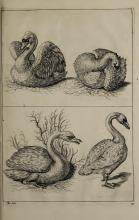 This page contains the number 104 and features illustrations of four birds. There are two ducks and two smaller birds, drawn with detailed engraving techniques typical of the period. The images may have been used for studying avian anatomy or drawing techniques. |