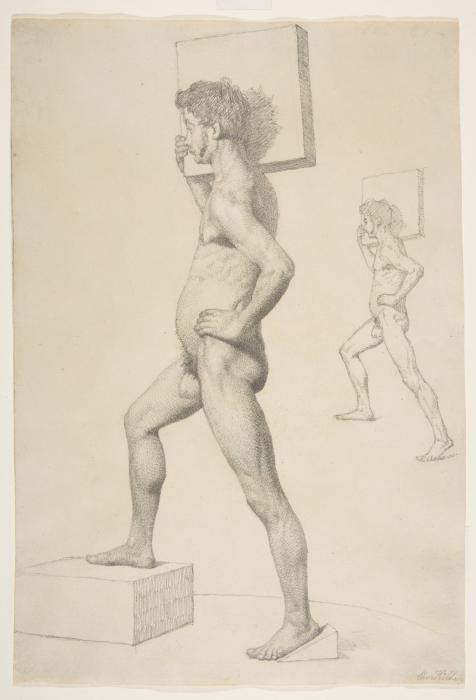 As someone who has worked with figure drawing models for years, I know that this pose with the block and straightened leg is no easy pose to hold or get a model to hold for long periods of time. So let's take a moment to appreciate the anonymous model who had to hold this pose for many hours in 1832.
